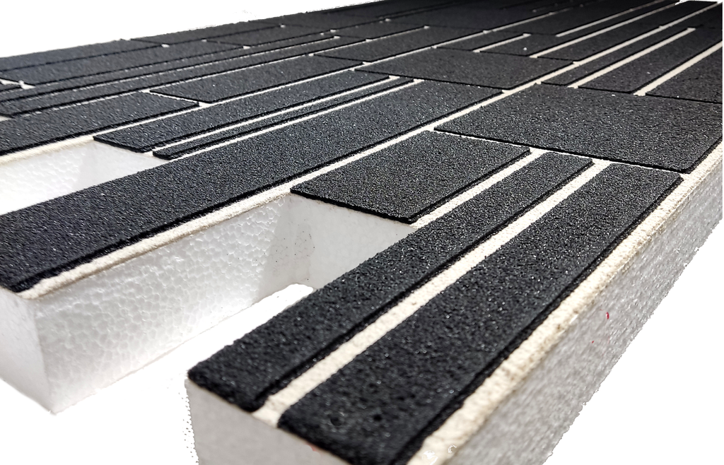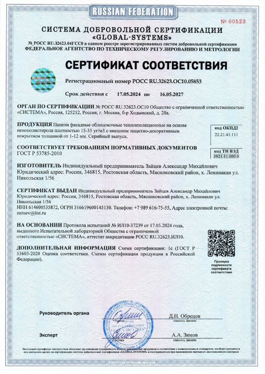 Армирующим слоем термопанели служит специальный полимерный состав из мраморного песка, который монолитно залит на пенополистирол матричным способом. Расшивка и «кирпичики» являются единым неделимым армирующим слоем. Его невозможно отделить от утеплителя никаким образом.