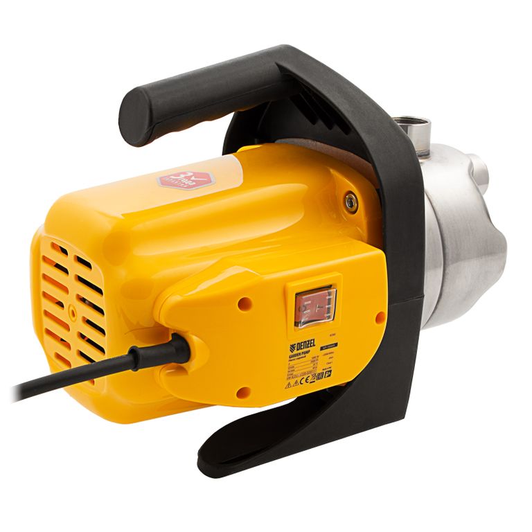 <p>Садовый поверхностный насос Denzel GP1000X 97202 с корпусом из «нержавейки», мощностью 1000 Вт и производительностью 3500 л/ч, позволяет перекачивать большие объемы чистой воды из резервуаров и колодцев глубиной до 8 м, а высоты подъема до 44 м хватает для питания систем полива и водоснабжения загородного дома. Благодаря высокой производительности насос обеспечивает подачу воды сразу в несколько точек разбора.</p><h2>Преимущества</h2><ul><li>Термозащита — двигатель автоматически отключается в случае перегрева, что продлевает срок его службы.</li><li>Продуманная конструкция — кожух на электродвигателе защищает его от загрязнений и обеспечивает эффективное охлаждение.</li><li>Надежность — корпус насосной части из нержавеющей стали устойчив к повреждениям и образованию коррозии.</li><li>Безопасность пользователя — двойная изоляция токопроводящих элементов уменьшает риск получения электротравмы.</li><li>Качественные комплектующие — вал из нержавеющей стали и торцевое уплотнение из карбида кремния обеспечивают долговечность насоса.</li><li>Устойчивость — широкие опоры исключают опрокидывание и выход насоса из строя.</li><li>Удобное перемещение — устройство весит 8,6 кг и имеет удобную ручку.</li><li>Подтвержденное качество — гарантия на заводской брак действует 3 года.</li></ul> |