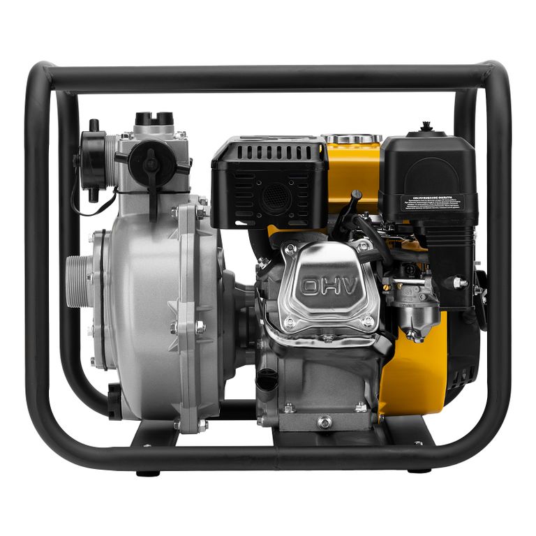 - Надежность — мощная стальная рама защищает мотопомпу от повреждений.