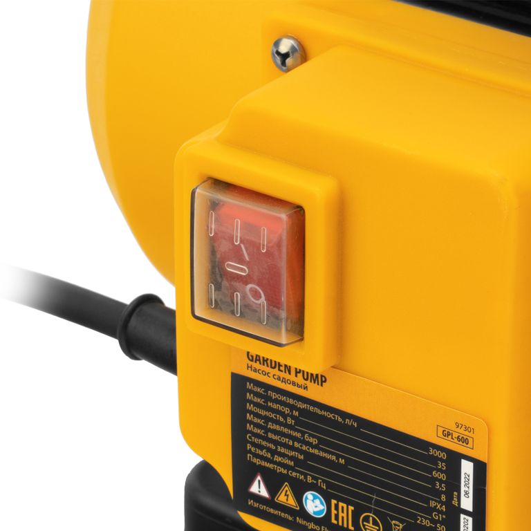 Садовый поверхностный насос GPL600, 600 Вт, 3000 л/ч, подъем 35 м, пластик Denzel |