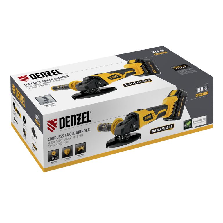 Машина углошлифовальная аккумуляторная бесщет. BLG-IB-18-125-4, Li-ion, 18 В Denzel |