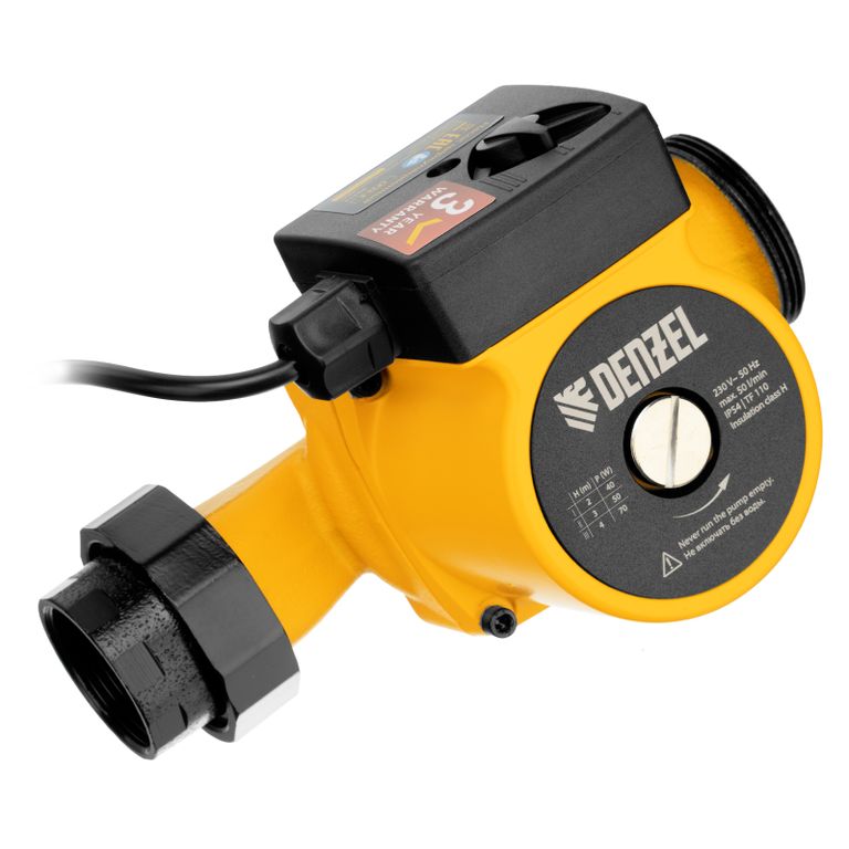 <p>Циркуляционный насос Denzel CP32-4 99413 с кабелем длиной 1 м имеет монтажную длину 180 мм и обеспечивает напор до 4 м, максимальный объем перекачиваемой жидкости составляет 50 л/мин. Устройство обеспечивает непрерывное движение горячей воды температурой до 110 °C по трубопроводу. Насос позволит организовать эффективную систему теплоснабжения загородного дома.</p><h2>Преимущества</h2><ul><li>3 режима работы — механический переключатель позволяет регулировать скорость движения теплоносителя, тем самым изменяя степень нагрева помещения в зависимости от температуры на улице или предпочтений пользователя.</li><li>Прочность — чугунный корпус устойчив к механическим повреждениям и выдерживает давление до 10 бар.</li><li>Надежность — двигатель с медной обмоткой устойчив к нагрузкам и стабильно работает длительное время.</li><li>Степень защиты IP54 — внутренние элементы надежно изолированы от пыли и брызг воды.</li><li>Универсальность — насос поставляется с комплектом переходных гаек, поэтому его можно устанавливать на трубы с разной резьбой.</li><li>Гарантия 3 года — высокое качество насоса подтверждено производителем.</li></ul> |