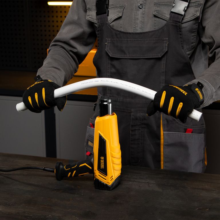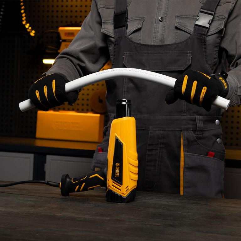 Фен технический Denzel HGH-2000 28002 мощностью 2000 Вт поддерживает 2 режима работы, обеспечивая стабильную производительность на уровне 300 или 500 л/мин. В зависимости от выбранного режима рабочая температура составляет 350 °C или 600 °C. Фен позволяет просушивать и снимать лакокрасочные покрытия, производить сварку пластиковых изделий, паять и размораживать трубы, проводить дезинфекцию поверхностей с помощью потока горячего воздуха, а также решать множество других задач.