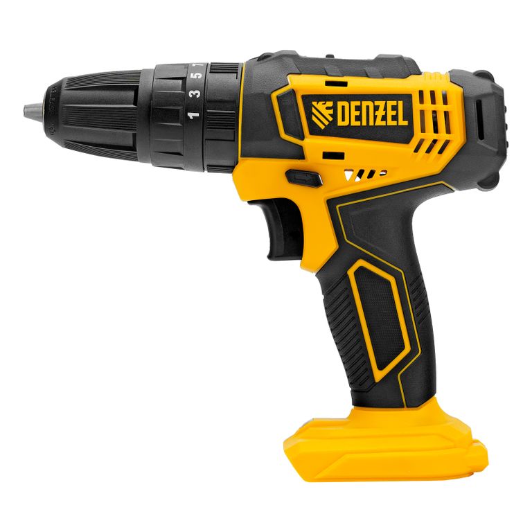 - Универсальность — дрель-шуруповерт совместима с любым Li-Ion аккумулятором и зарядным устройством единой платформы Denzel Battery System 18V.