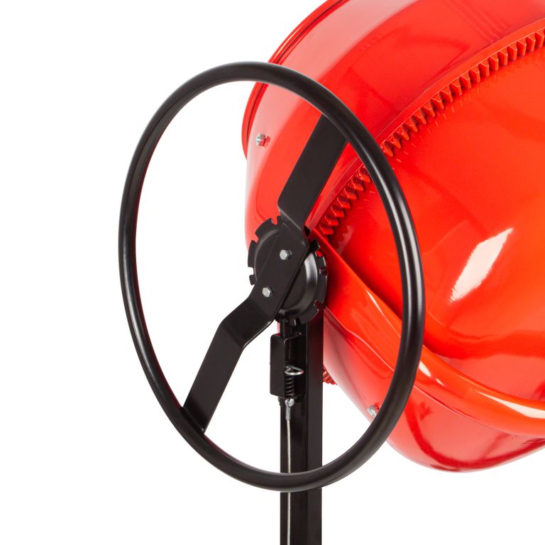 - Мобильность — оснащенная двухкомпонентными широкими колесами 180 мм из прочного пластика, бетономешалка легко перевозится по строительной площадке.