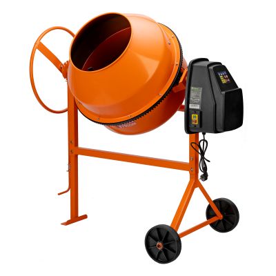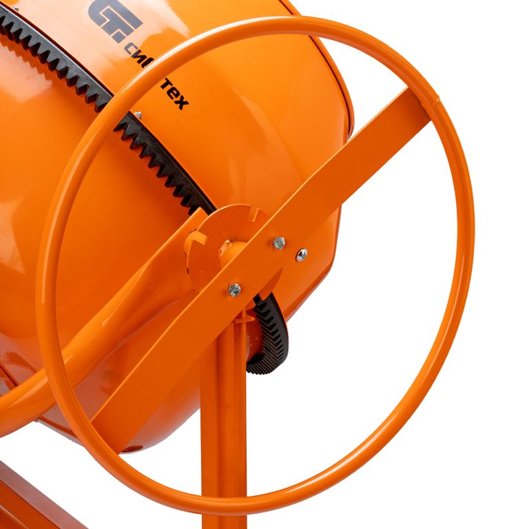 - Продуманная конструкция — увеличенный диаметр колес обеспечивает устойчивость бетоносмесителя во время работы, а также упрощает его перемещение по рабочей площадке.