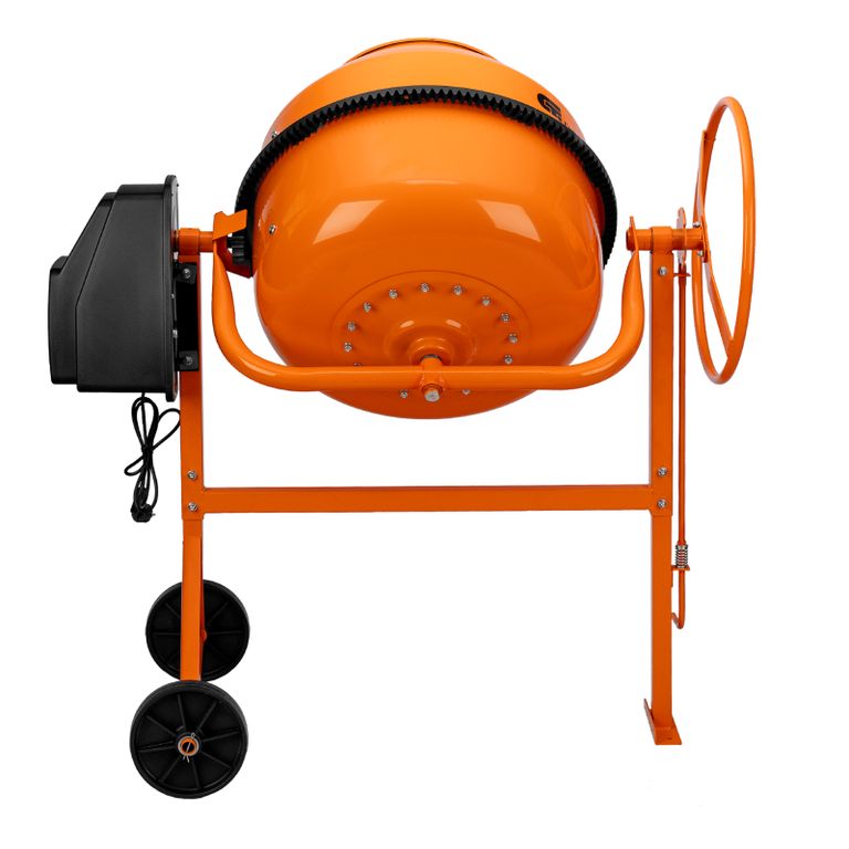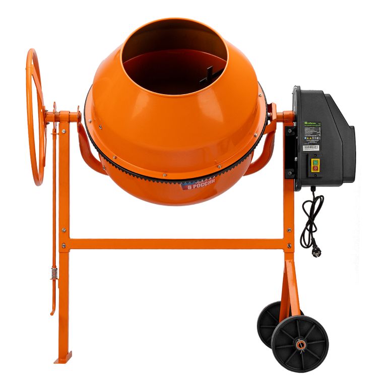 - Удобная загрузка и выгрузка смеси — барабан легко фиксируется в наклонном положении при помощи педали.