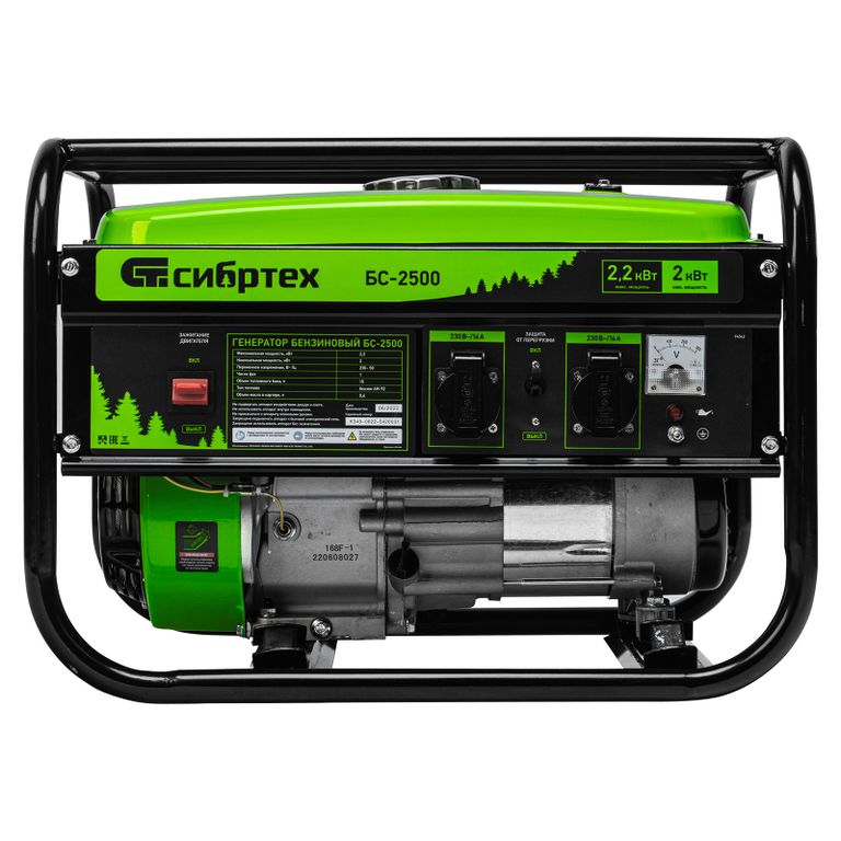 Генератор бензиновый БС-2500, 2.2 кВт, 230В, четырехтактный, 15 л, ручной стартер Сибртех |