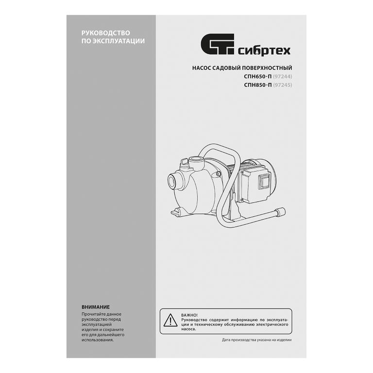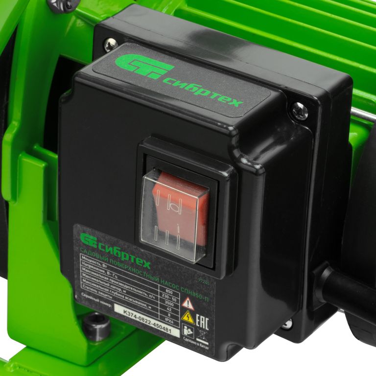 <p>Садовый поверхностный насос Сибртех СПН850-П 97245 мощностью 850 Вт и производительностью 3500 л/ч, с корпусом насосной части из пластика, может забирать воду с глубины до 8 м из колодцев, водоемов и накопительных емкостей, создавая напор до 42 м. Используется для подачи воды на кухню, в душ или баню загородного дома, легко справляется с подачей воды на верхние этажи. Применяется также в системах орошения. </p><h2>Преимущества</h2><ul><li>Высокий ресурс двигателя — на корпусе из алюминиевого сплава предусмотрены ребра охлаждения.</li><li>Защита от случайного запуска — кнопка включения закрыта специальным колпачком.</li><li>Продуманная конструкция — металлические опоры с мягкими накладками обеспечивают устойчивость и снижают уровень вибраций.</li><li>Простая эксплуатация — включение и выключение осуществляется с помощью тумблера.</li><li>Легкое обслуживание — для откручивания пробки сливной горловины не нужны инструменты.</li><li>Комфортная транспортировка — насос весит 6,45 кг и снабжен удобной ручкой.</li></ul> |