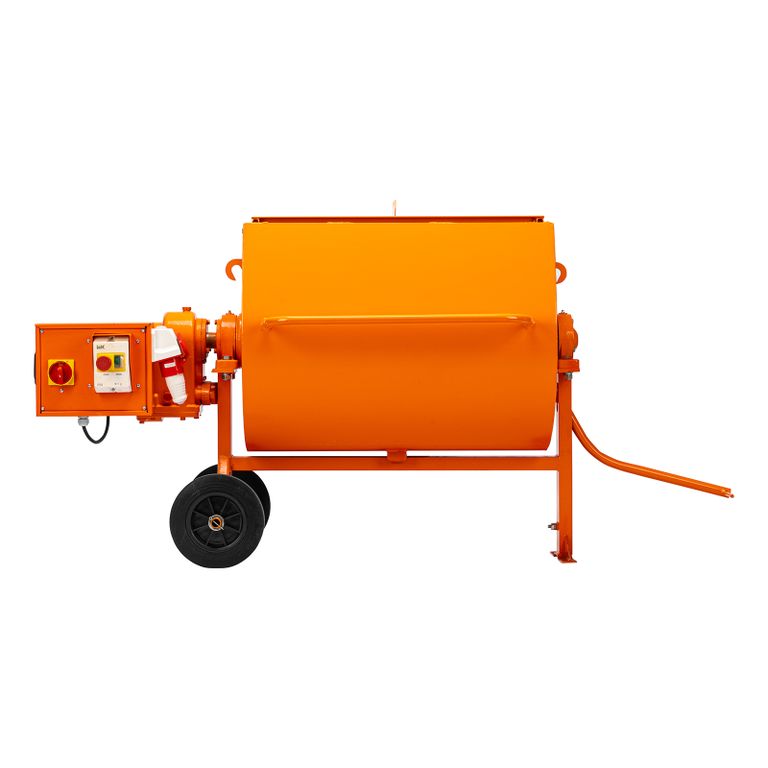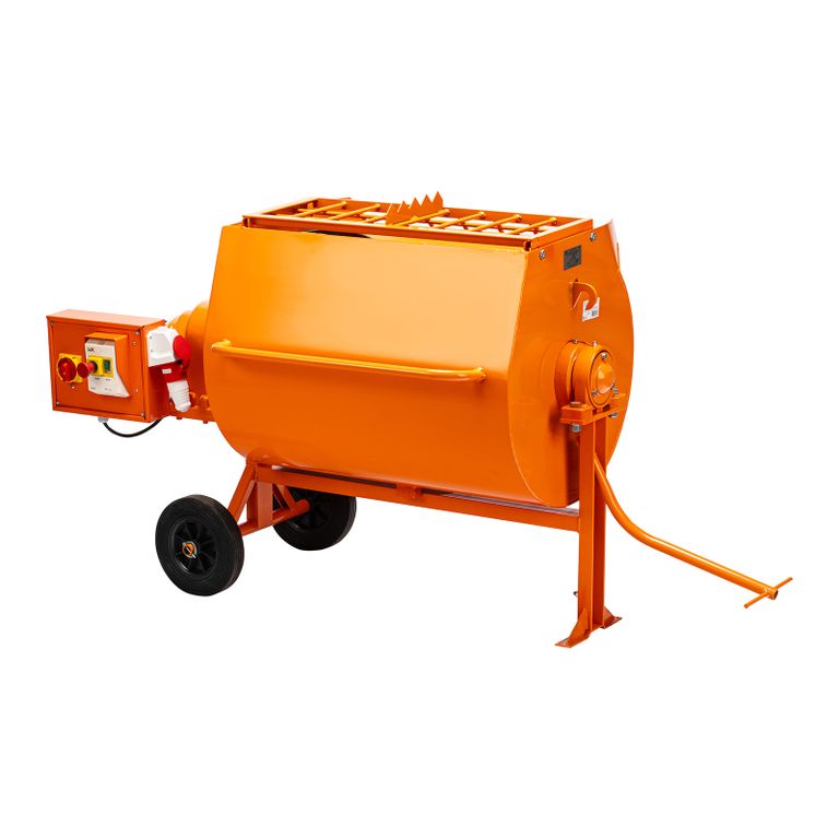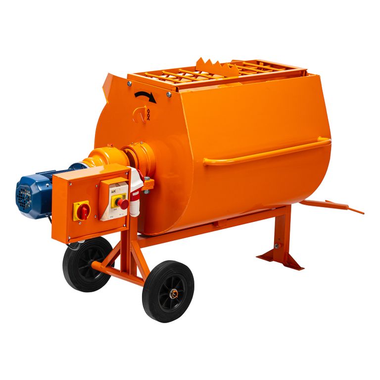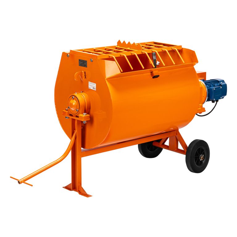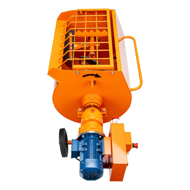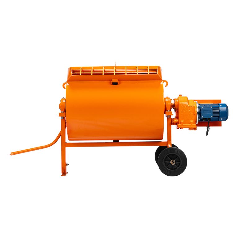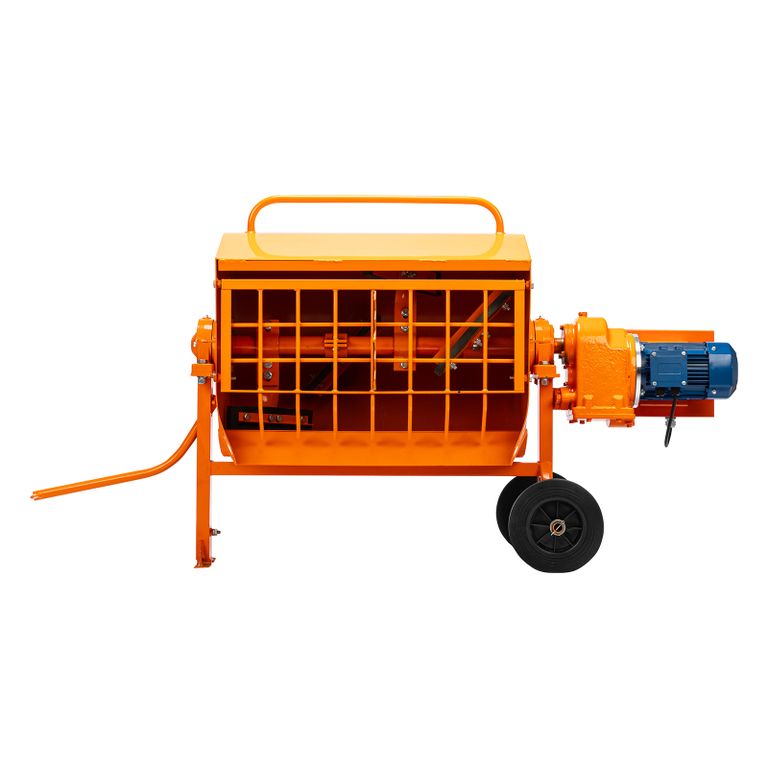- Продуманная конструкция — двигатель отделен от блока смесителя, что позволяет минимизировать воздействие вибраций на основные элементы и продлить срок службы растворосмесителя.