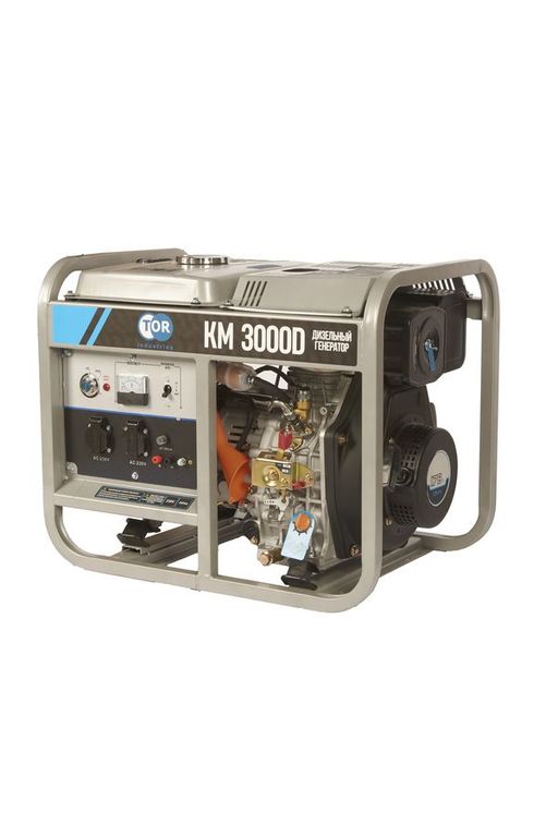 TOR KM3000D — мощный, экономичный и удобный дизельный генератор для дома, дачи и профессионального использования, где важны надежность, автономность и комфорт. Дизельный генератор TOR KM3000D — мощное и экономичное решение для резервного или автономного электроснабжения. Мощность 3,0 кВт позволяет одновременно питать бытовую технику, электроинструменты, освещение и оборудование в условиях отсутствия централизованной сети. Работает на дизельном топливе, что обеспечивает высокий КПД, длительный ресурс двигателя и низкий расход топлива по сравнению с бензиновыми аналогами. Оборудован двумя розетками 220 В, выходом постоянного тока 12 В и клеммой заземления для безопасной эксплуатации. Топливный бак объемом 15 литров обеспечивает до 10 часов работы без дозаправки (справочно). Электростартер с кнопочным запуском исключает физические усилия — запуск мгновенный, даже в холодную погоду. Где используется? Подходит для резервного питания жилого дома, квартиры, дачи, гаража, небольшой мастерской или кемпинга. Идеален для использования при отключении электроэнергии, во время поездок за город, на строительных объектах или в местах, где нет доступа к централизованной сети. Эффективен для питания холодильников, насосов, сварочных аппаратов, компрессоров, освещения и других устройств с суммарной мощностью до 3,0 кВт. Основные преимущества: - Дизельный двигатель — большой ресурс работы, реже требует обслуживания, устойчив к перегрузкам. - Высокий КПД — меньший расход топлива при одинаковой нагрузке по сравнению с бензиновыми моделями. - Медная обмотка альтернатора — эффективно отводит тепло, предотвращает перегрев и сохраняет мощность даже при пиковых нагрузках. - Индикаторы уровня топлива и масла — удобство контроля и своевременного обслуживания. - Прочная рама — защищает основные узлы от повреждений при работе и транспортировке. - Две розетки 220 В — возможность подключения нескольких потребителей одновременно. - Выход постоянного тока 12 В — подходит для зарядки аккумуляторов, питания автомобильных устройств. - Увеличенный топливный бак 15 л — обеспечивает длительную автономную работу без дозаправки. - Клемма заземления — гарантирует безопасность при эксплуатации. - Электростартер — мгновенный запуск одним нажатием кнопки, не требует аккумулятора, работает в любых погодных условиях. - Надежность и долговечность — соответствует требованиям безопасности и прошел строгий контроль качества.